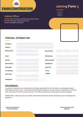 I agree to undertake work with S BABA Construction on a contractual basis.